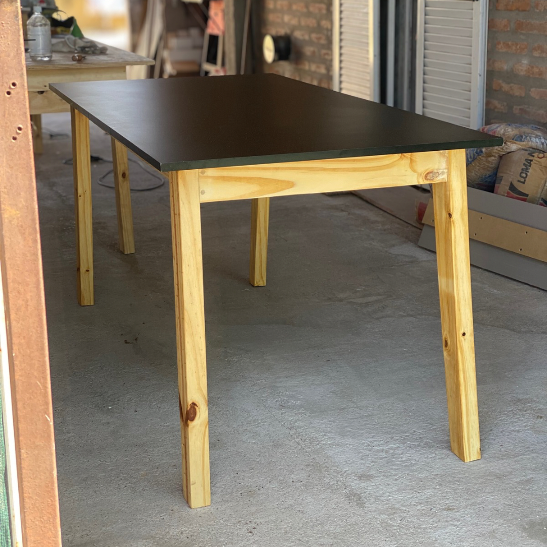 Mesa nórdica para 6 con estructura de pino elliottis y tapa de melamina negra 18mm
